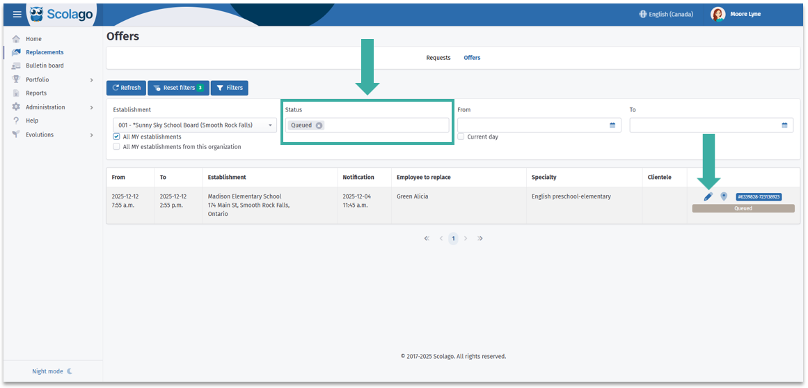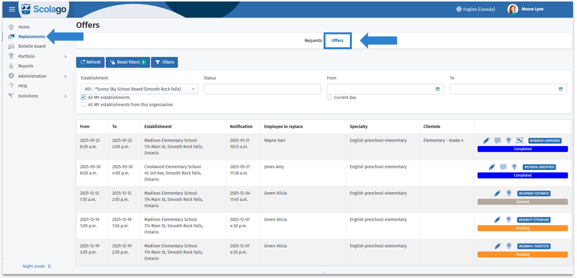 Pre-acceptance is a feature that allows you to indicate your interest in an offer before it is officially sent to you. This process optimizes the distribution of substitute assignments while respecting collective agreements and the internal policies of your educational establishment.