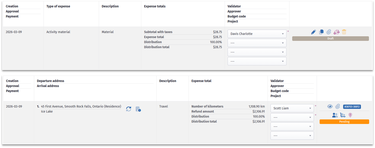 - Expense reimbursement status : This filter helps you find requests based on their status, whether they are pending validation, approved, or paid.