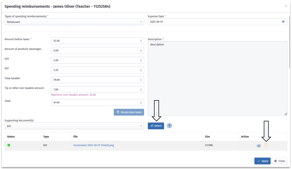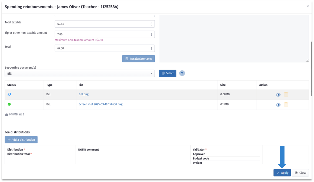 Please note that you can add multiple supporting documents for the same expense, if necessary.