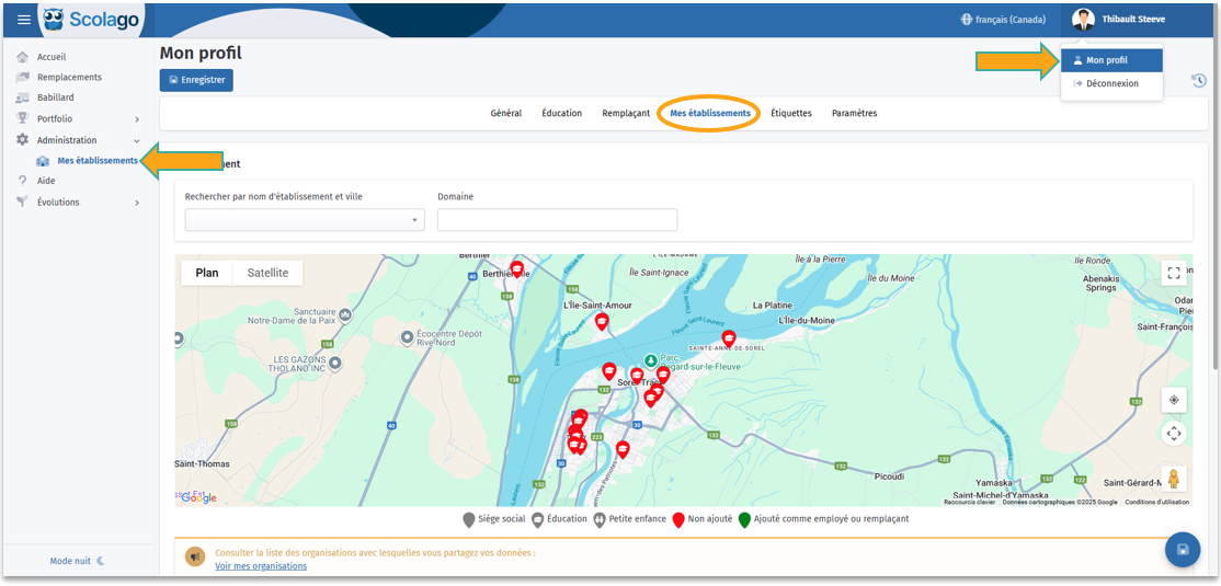 Peu importe la façon de procéder, notez qu'une fois votre inscription complétée, la ou les organisation(s) sélectionnée(s) devront évaluer votre candidature afin que celle-ci soit considérée dans les demandes de remplacements et que vous en receviez les offres. Pour tout renseignement en lien avec les processus internes et les configurations appliquées à votre profil chez eux, nous vous invitons à communiquer avec la personne responsable de l'organisation : ses coordonnées se retrouvent au module Aide de la plateforme. |