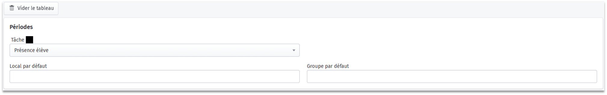 Par défaut, l’horaire comporte une tâche nommée Présence élèves: il s’agit des moments où vous devez être remplacé en cas d'absence. Il est possible de préciser, pour chaque période en présence des élèves, le numéro du local où le travail doit être effectué ainsi que le numéro du groupe.